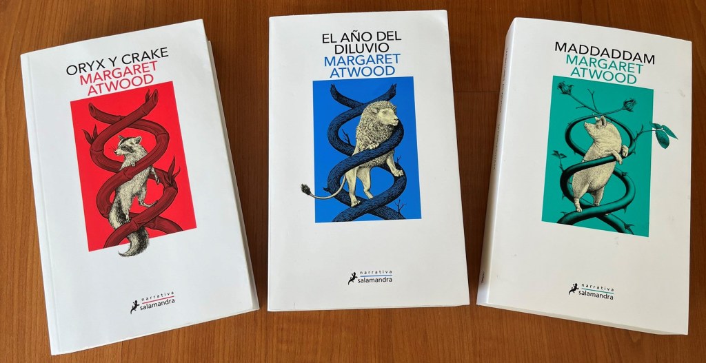Finalmente ¿Cómo no referirnos a Margaret Atwood? Y no sólo por «El cuento de la criada» publicada en 1985. El caos social y la desesperación provocados por la degradación planetaria basada en por el cambio climático quedan magistralmente reflejados en la trilogía de novelas formadas «Oryx y Crake», «El año del diluvio» y «MaddAdam».