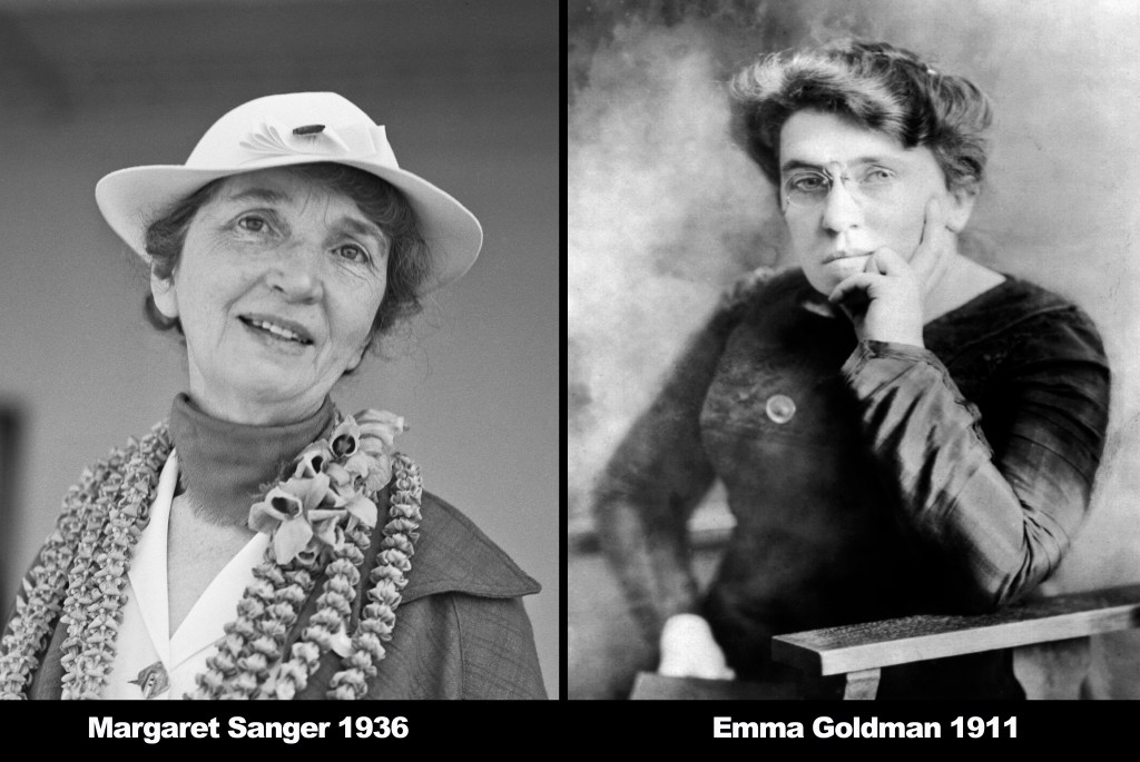 Las feministas de la primera ola son pensadoras al tiempo que activistas Margaret Sanger (1879-1966), que fue pionera luchando por los derechos reproductivos y la legalización del aborto. Emma Goldman (1869-1940) de origen ruso, fue anarquista, escritora y feminista fue apodada «la mujer más peligrosa de América»; fue detenida varias veces y exiliada de EE.UU.