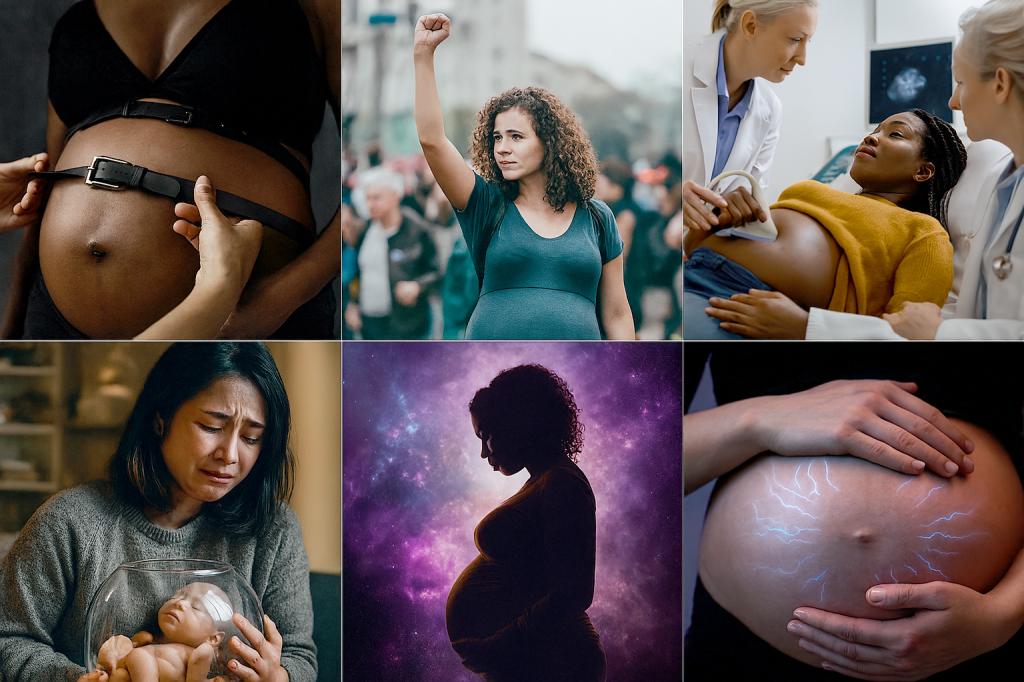 La gestación se convierte en producto, contrato o capital. Las mujeres son valoradas por su fertilidad y explotadas por sistemas económicos o corporativos. La maternidad deja de ser experiencia íntima para convertirse en transacción regulada por el mercado, la tecnología o la desigualdad estructural.