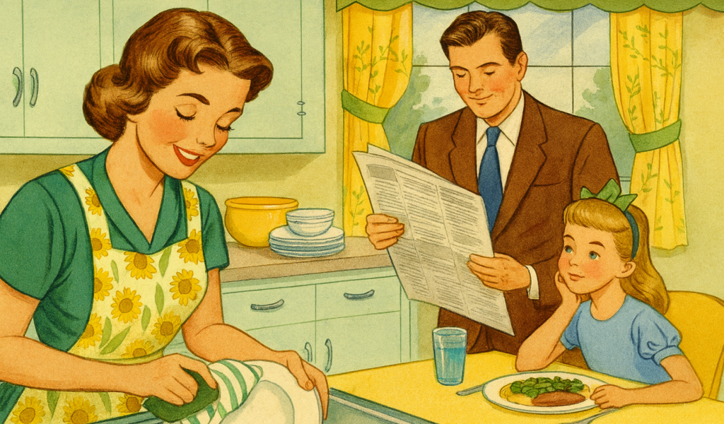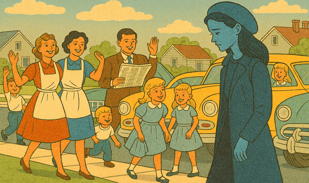 El año 1959 se sitúa justo antes del estallido de los movimientos sociales de los años 60, incluida la segunda ola del feminismo. Así, el régimen se asegura de que Adriane aterrice en una época sin resistencia organizada ni cuestionamiento serio de los roles de género. Para las mujeres, era una época de opresión invisible: se esperaba que fueran amas de casa perfectas y madres abnegadas.